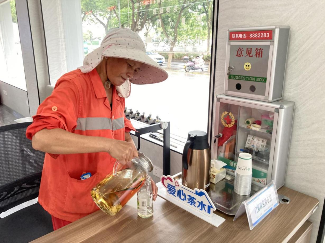 “我们户外工作者好多时候带的水不够喝,现在好了,可以进来续免费的茶水!”“我家孩子在东坡小学读书,有时候有点事晚点才能来接孩子,我就让孩子在便民服务大厅等我,距离近也安全,环境也好,放心!”