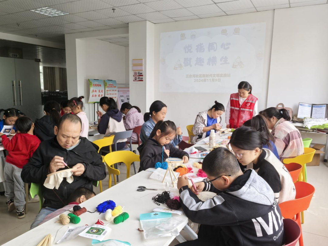 11月9日,黄州区西湖街道三台河社区新时代文明实践站开展“悦指同心 戳趣横生”截戳绣手工活动,丰富社区青少年的课余文化生活,培养他们的动手能力与艺术感知力。