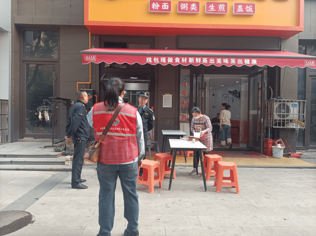 行动中,社区工作人员和城管执法人员一起,劝导临街商户、早餐店业主不要出店经营、违规占道,督促商户现场整改。城管执法人员温情执法,将摆放在外的桌椅板凳进行规范摆放。城管执法人员将堆积在水果店门口的果皮全部清理到垃圾桶内,对影响市容市貌的行为进行劝导。同时,社区志愿者进行宣传引导,提高商户对城市管理的认识和支持度。