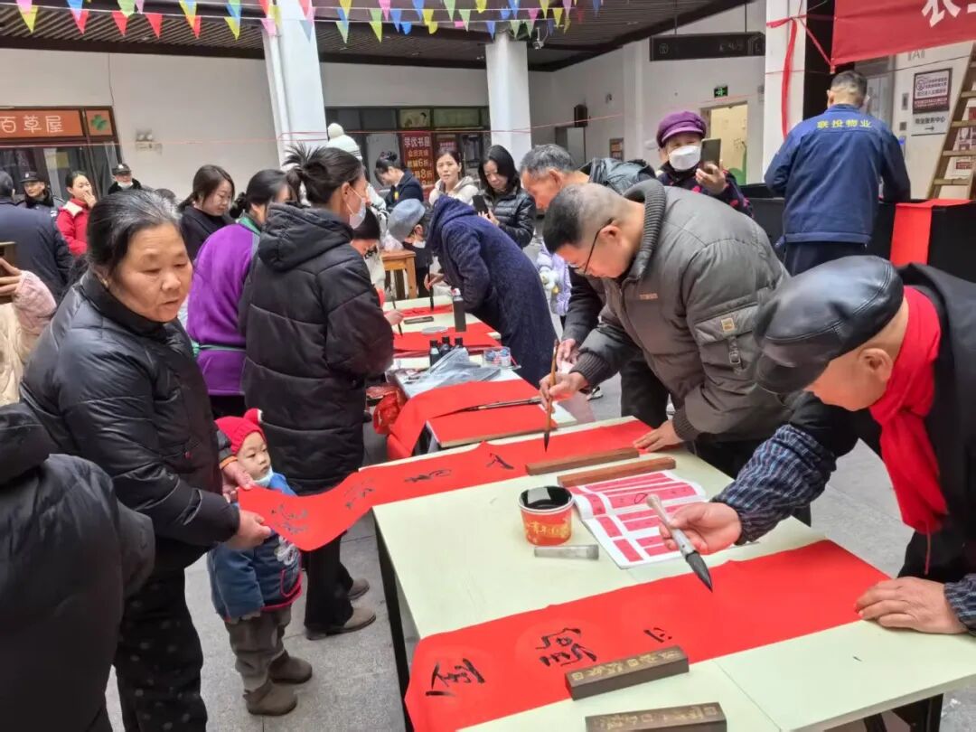 瞧,写春联区也围满了居民。书法爱好者拿起笔,在红纸上书写下自己对新年的美好祝福。一副副对仗工整、寓意吉祥的春联散发着浓浓的墨香。这些充满喜庆与祝福的话语,不仅为即将到来的春节增添了浓浓的年味,也传递着对美好生活的向往。