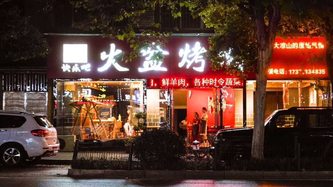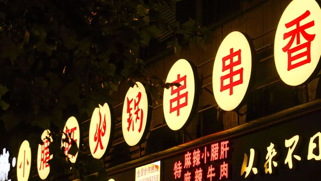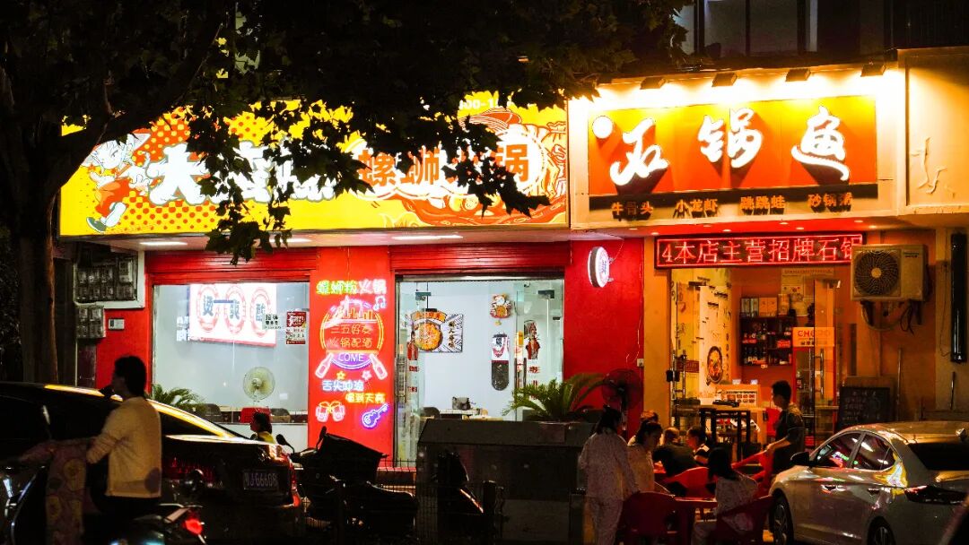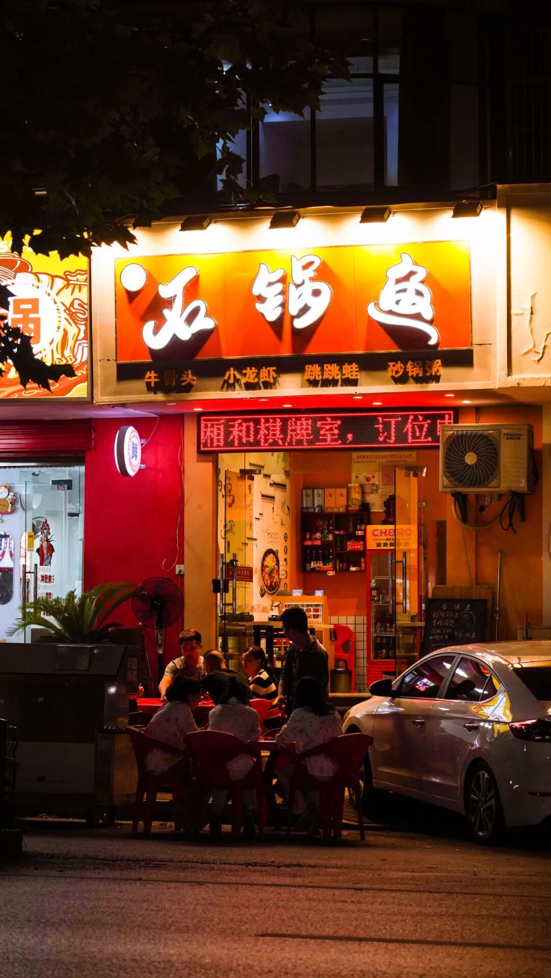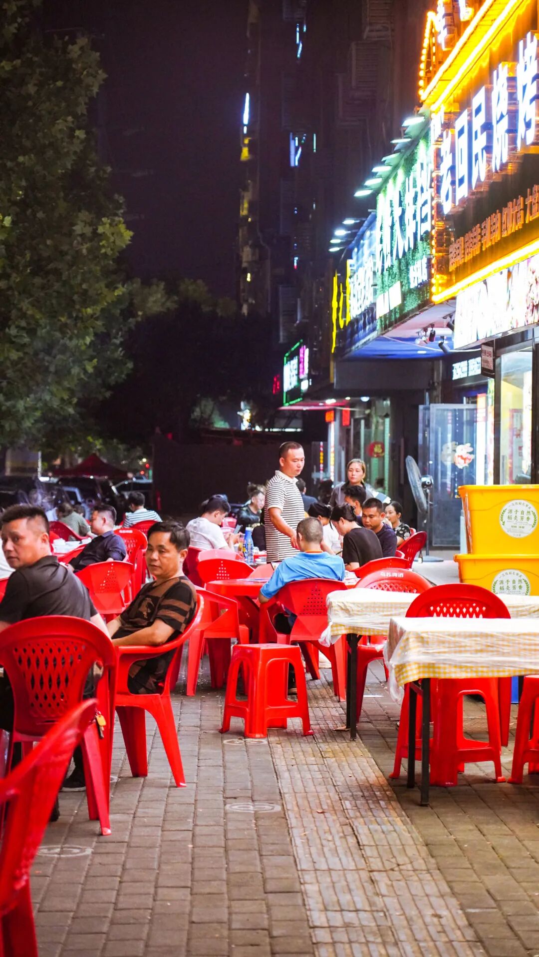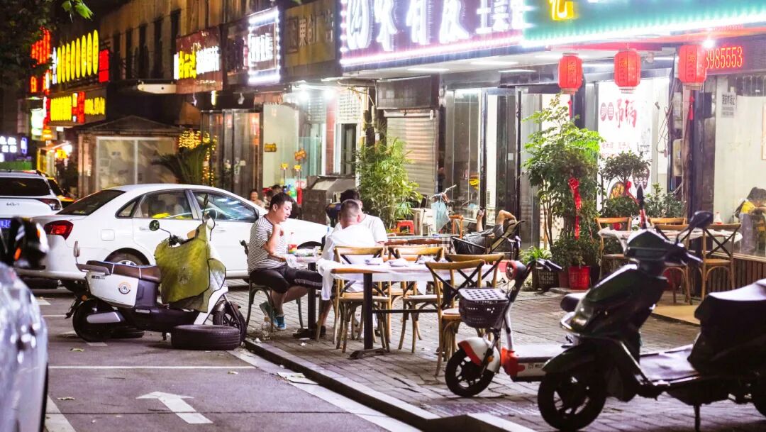 几十家餐饮店和大排档鳞次栉比,每一扇透着暖光的窗户后,都藏着令人垂涎的美味;