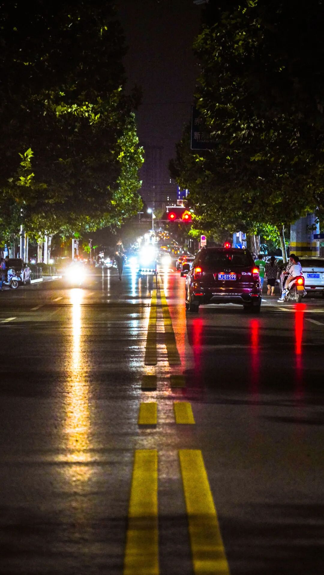 ☀白天,阳光洒在宽阔整洁的马路上,车水马龙间满是生活的奔忙;