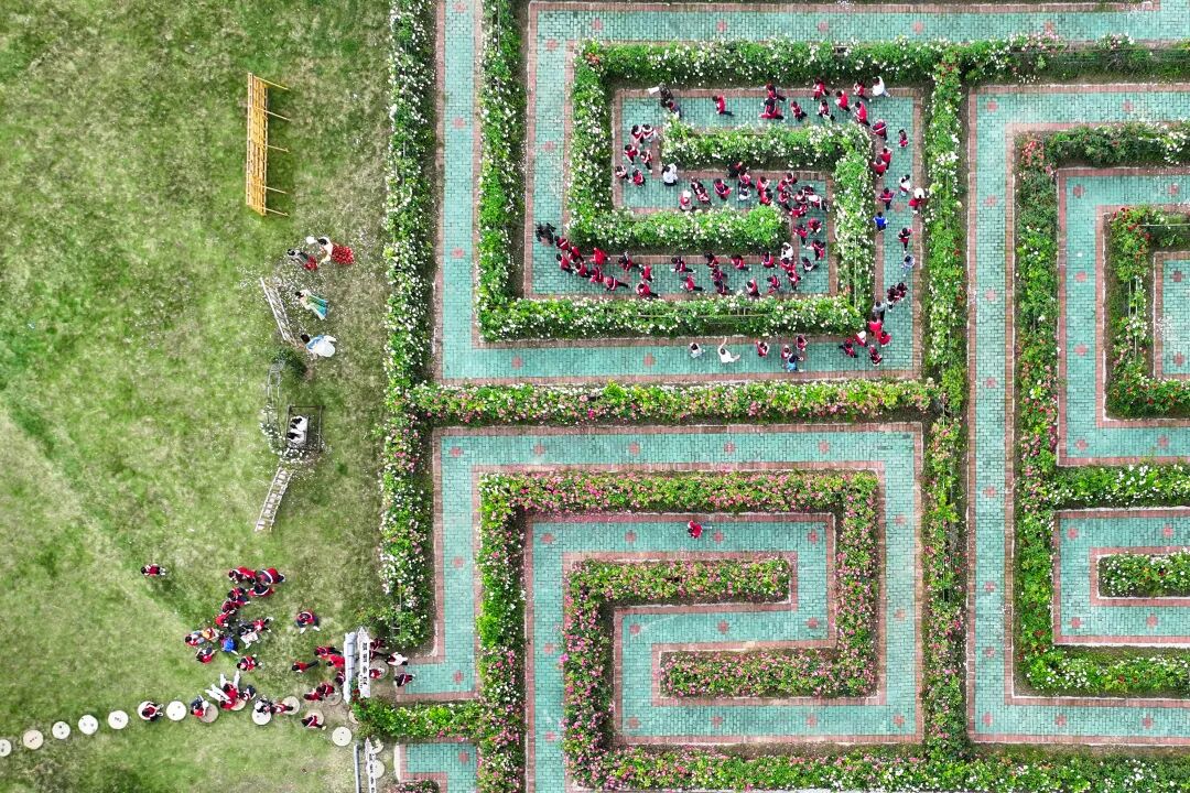 孩子们在月季迷宫里穿梭……