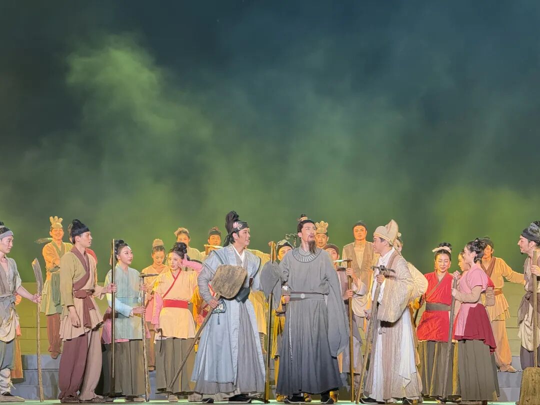 而五一节假期的前两天晚上,湖北省黄梅戏大剧院内座无虚席,《大江东去》音乐剧剧场版,融合中国传统民乐与现代摇滚音乐,品东坡济世情怀,重现东坡先生在黄州“一尊还酹江月”的豪情与“一蓑烟雨任平生”的旷达。