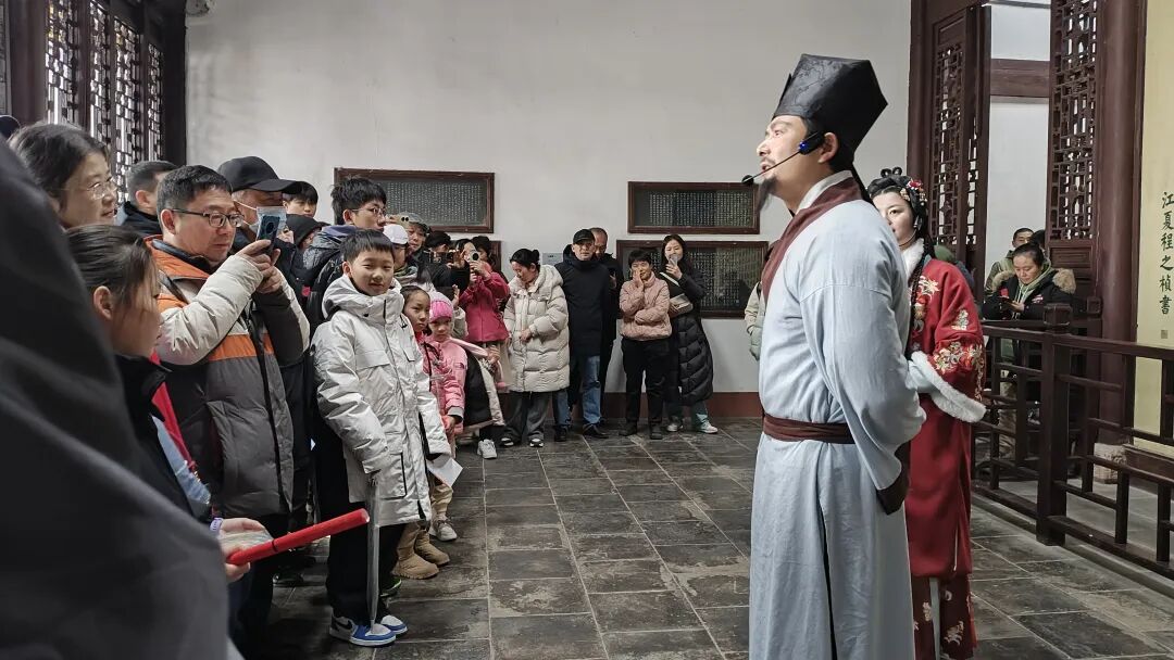假日期间,东坡赤壁公园推出《赤壁矶头遇见东坡》文化小剧演出,演员们身着古装,生动还原了苏东坡被贬黄州期间的生活场景与创作心境。景区还配套开展“观东坡小剧、吟东坡诗词、拓东坡碑刻”等系列体验活动,游客在这里沉浸式地感受传统技艺与东坡文化的完美融合。