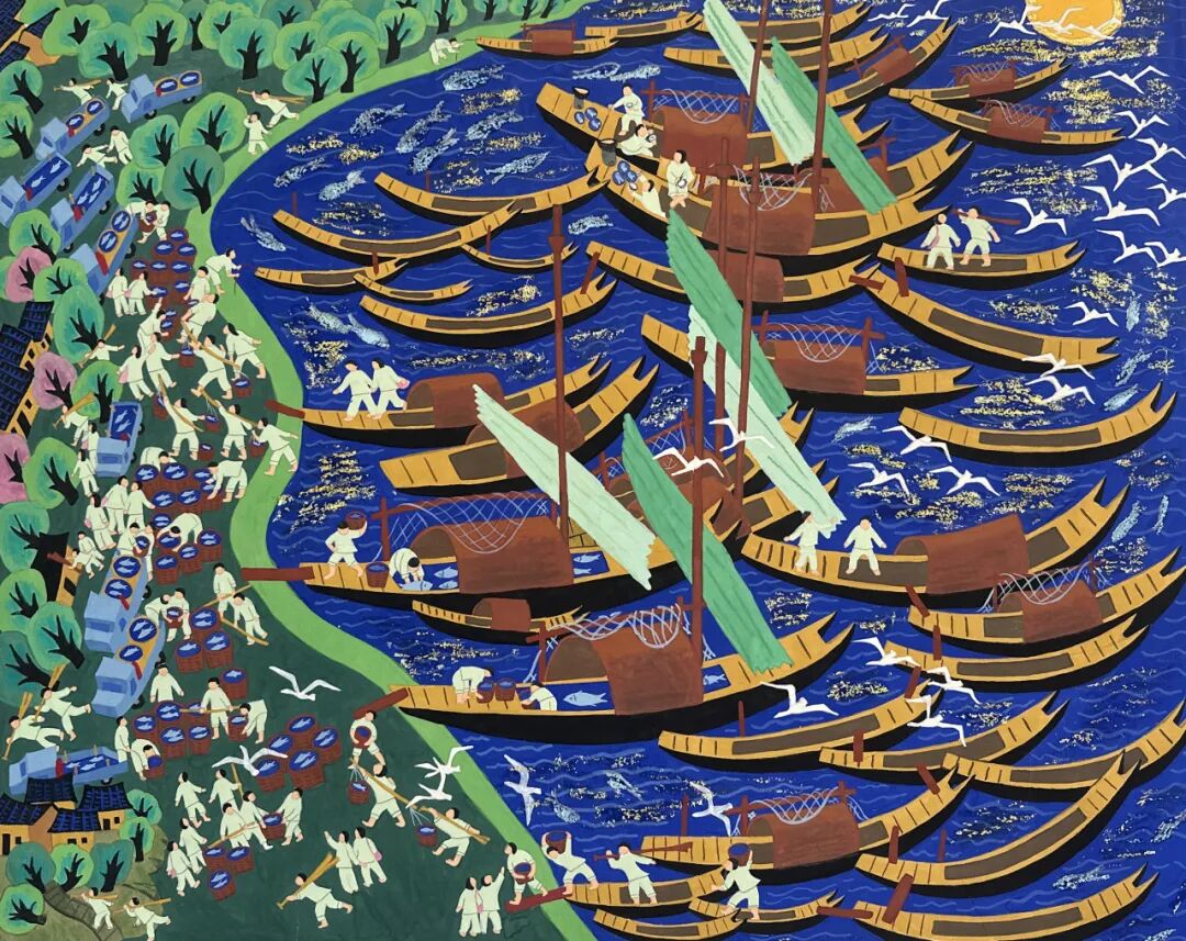 在黄州区文化馆农民画展中心,色彩浓烈的农民画在木架上舒展,古朴线条勾勒出民间传说,具有浓郁的乡土气息和厚重的地方特色。