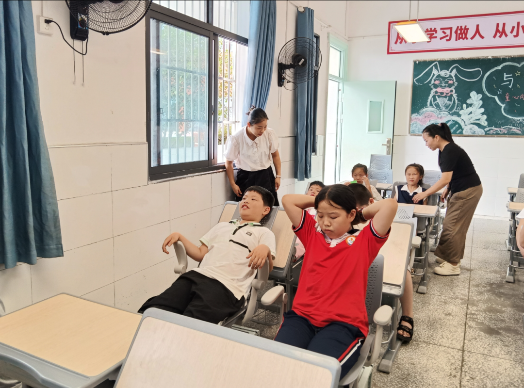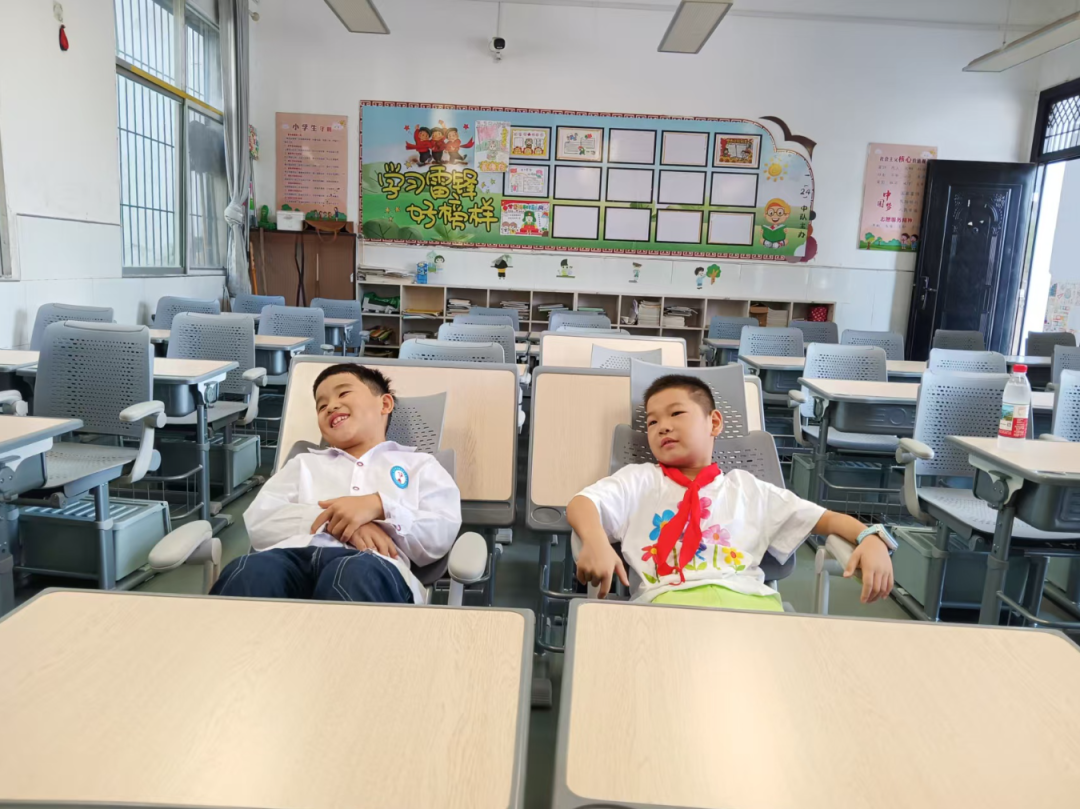 看着学生和家长体验时满意的笑容,校长张志也很欣慰。陈潭秋校区小学部是一所农村小学,学生多是留守儿童,这次作为黄州区推行中小学生午休“趴睡”变“躺睡”试点四个学校之一,他们采购了450套躺式折叠课桌椅,保证每个孩子中午都可以实现“躺睡自由”。