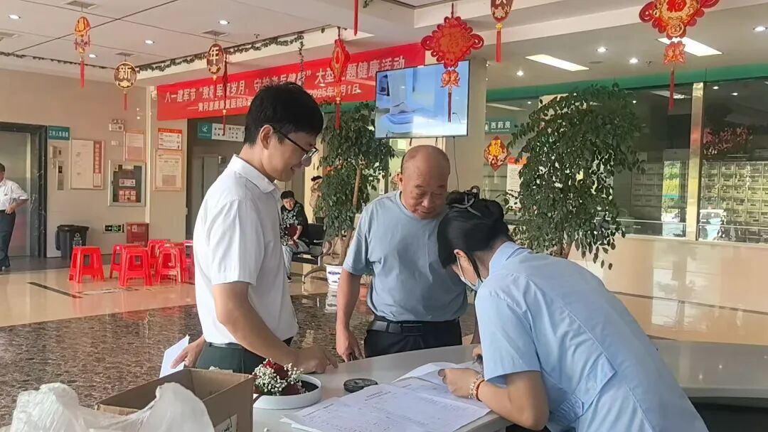 恰逢八一建军节,中心同步开展了“致敬军旅岁月 守护老兵健康”大型公益活动,为这场启动仪式增添了浓厚的温情与敬意。活动现场,惠康医院的医护人员组成专业团队,为辖区内的老龄退役军人提供免费体检、健康咨询、康复指导等服务。从血压测量、心电图检查到细致的健康评估,医护人员用专业与耐心,为曾经保家卫国的老兵们送上一份特殊的节日关怀。“没想到在家门口就能做这么全面的检查,太贴心了!”一位参加活动的老兵激动地说,话语中满是感动。