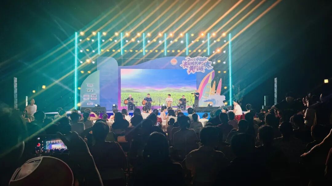 这是“艇美黄州 潮玩一夏”主题音乐会的演出现场。黄州本土知名乐队——彩虹桥民谣乐队专场献唱,带领现场数千名观众开启一场充满情怀与活力的音乐之旅。现场的旋律、美食、互动,随着晚风将现场观众的听觉、味觉、视觉全方位包裹,让白潭湖的夏夜,热烈地流动起来。