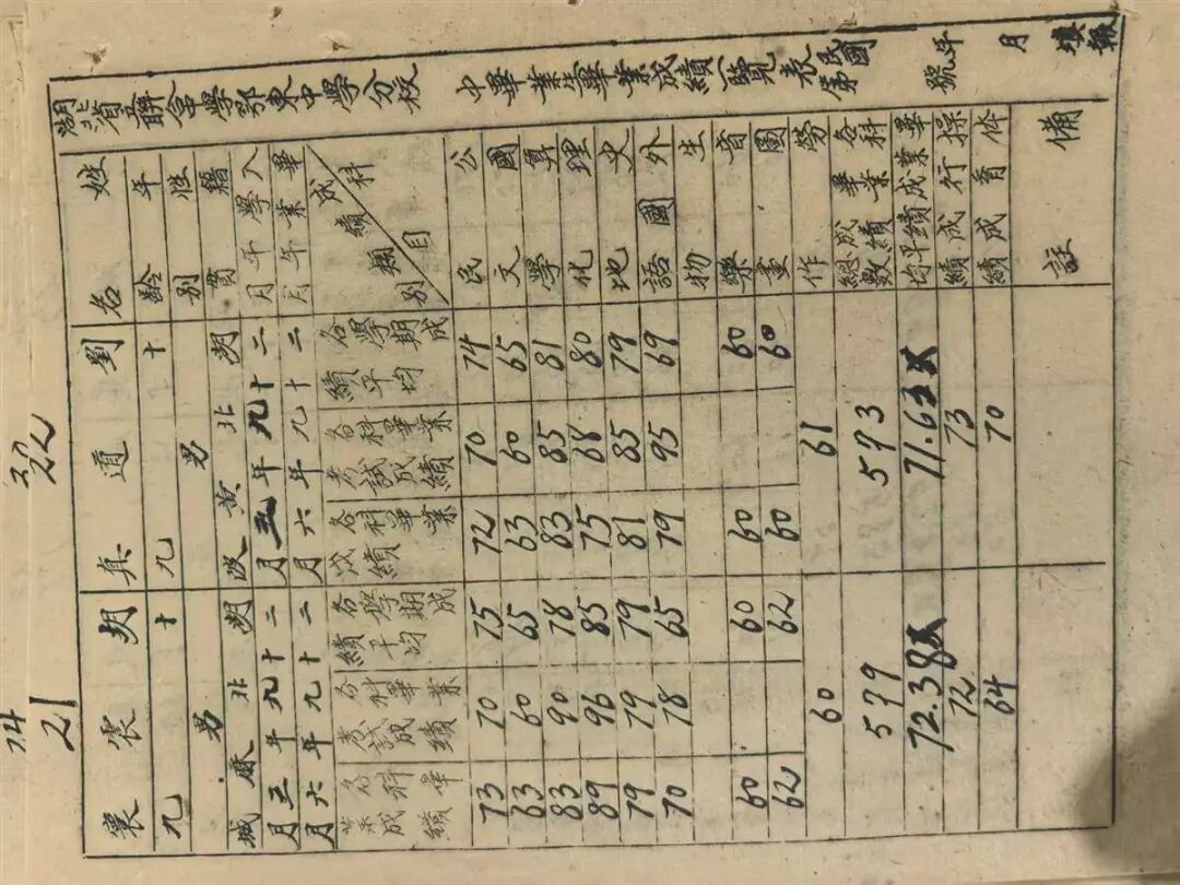 档案中,一张张用毛笔填写的“湖北省联合中学鄂东中学分校中学毕业生毕业成绩一览表”,罗列着每名学生的国文、算学、理化、史地、外国语、生物、音乐、图画、劳作、操行、体育等科目分数,与今日黄冈中学“五育融合”的育人追求遥相呼应。