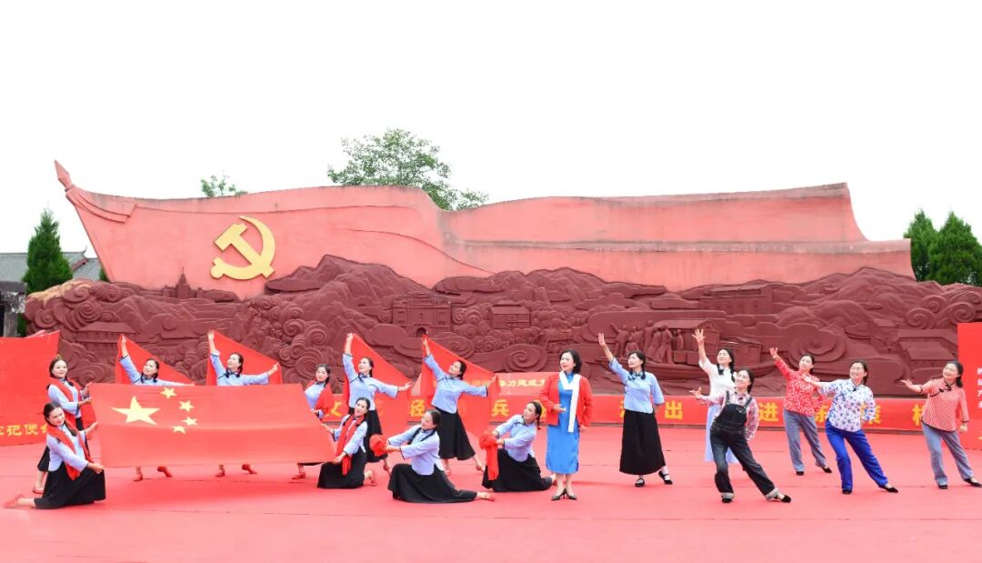 7月4日,在黄州区庆祝中国共产党成立104周年暨“红色文艺轻骑兵”下基层惠民演出活动中,由黄州区文化馆、黄冈市大众声乐委员会及社会文艺爱好者组成的演出团队,为观众呈上了一场红色音乐史诗剧《红船红》。演出以歌为帆、以舞为桨,带领现场观众重温党的光辉历程,感悟“三大精神”的磅礴力量。