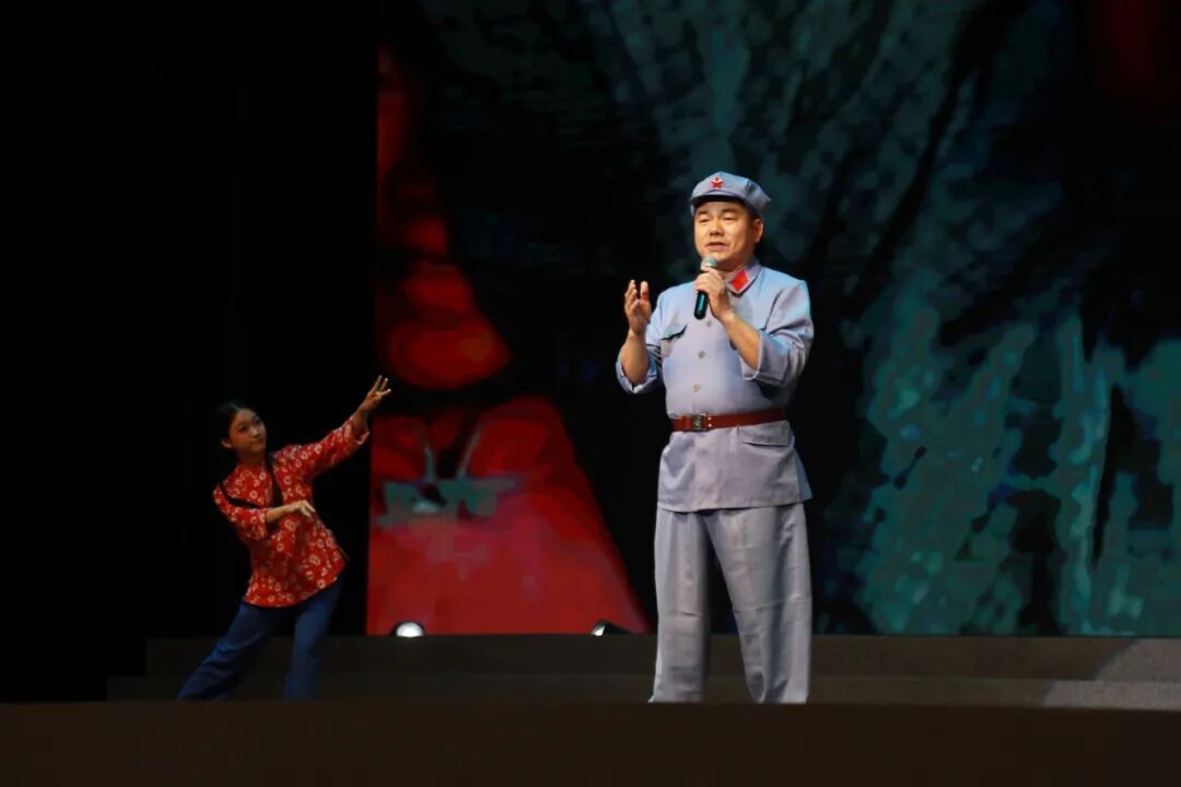 “不胜不休”篇章成为当晚感人至深的高潮之一。由伽米演讲与口才学校推送的红色情景剧《一把生锈的钥匙》,由多名少年儿童倾情演绎。孩子们身着旧时布衫,用稚嫩而真挚的表演,讲述了麻城苏维埃主席万永达面对酷刑宁死不交党组织名单的壮举。扮演万永达的小演员,把关系革命同志名单的一把钥匙吐入腹中,面对敌人严刑拷打、稚子被害也宁死不屈。舞台上,那把锈迹斑斑却重若千钧的钥匙道具,以及孩子们眼中闪烁的坚毅光芒,生动传递出革命者“宁死不屈、不胜不休”的钢铁意志,令不少观众动容。
