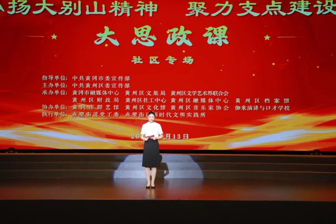 8月13日晚,黄冈市“弘扬大别山精神”大思政课社区专场活动在黄州区百姓剧场开讲。活动以“弘扬大别山精神 聚力支点建设”为主题,通过“宣讲+文艺”形式,为现场观众呈现了一堂生动的红色思政课。