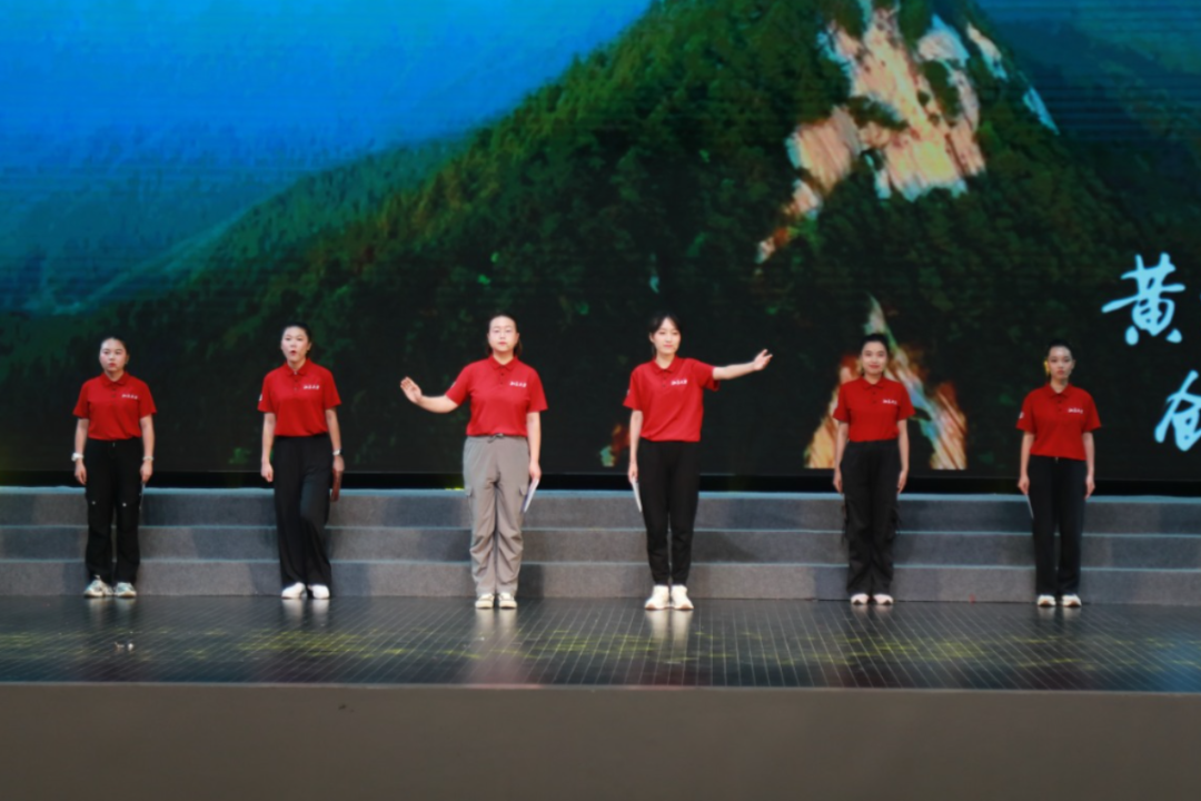 “建成支点”篇章聚焦新时代黄冈的奋进与荣光。北京大学“知行计划”暑期实践见习团队带来的情景诗朗诵《黄冈不大,创造神话》,深情回顾了这片红色热土从古至今孕育的杰出人物与辉煌成就。