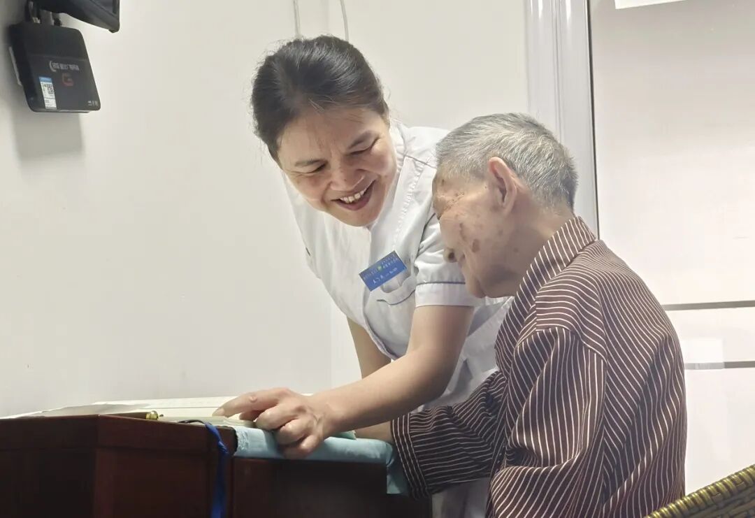 这样的对话每天都在上演。走进龙王山老年公寓,老人们见了王飞燕总像见了亲人,拉着她的手絮叨不停。90岁的唐爷爷含着纸巾走来,她立刻上前查看,拇指轻轻拭去老人嘴角的口水,轻声嘱咐护工给老人“多喝开水”。