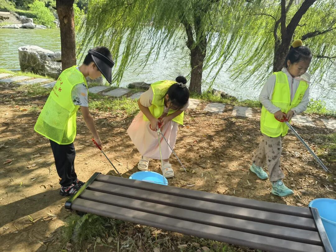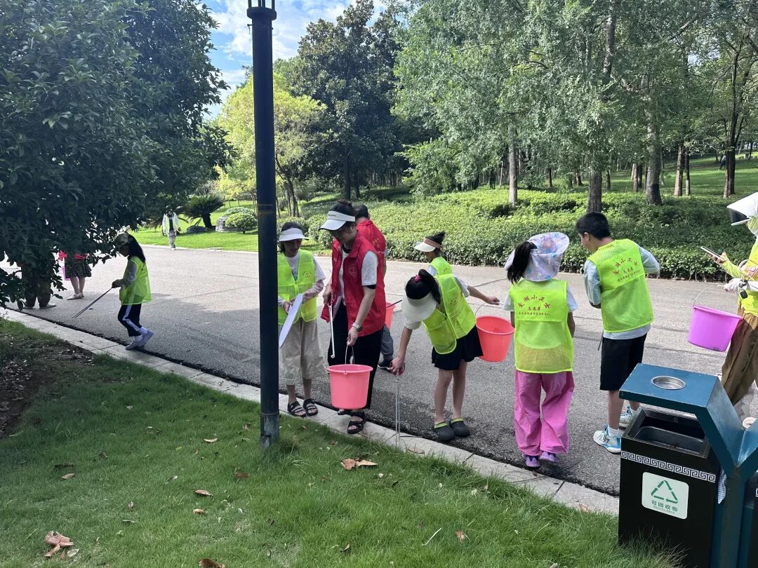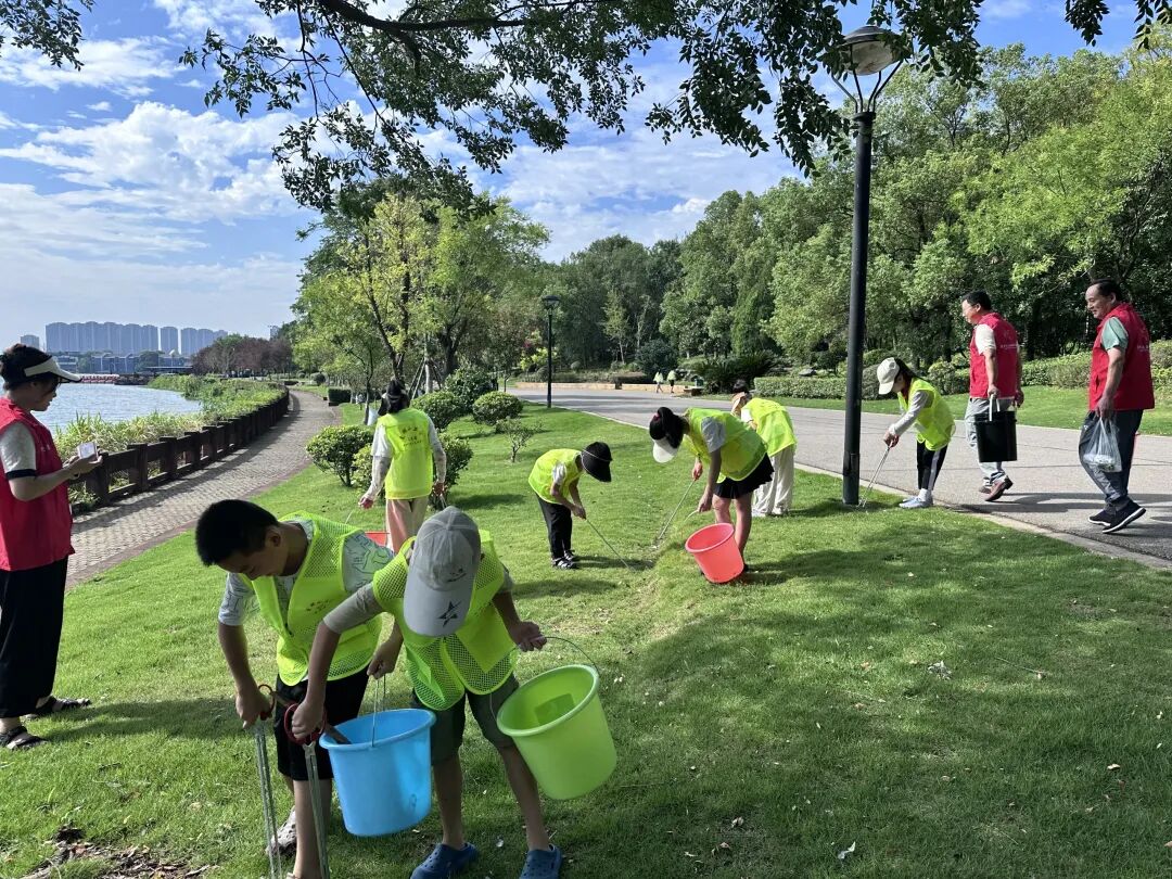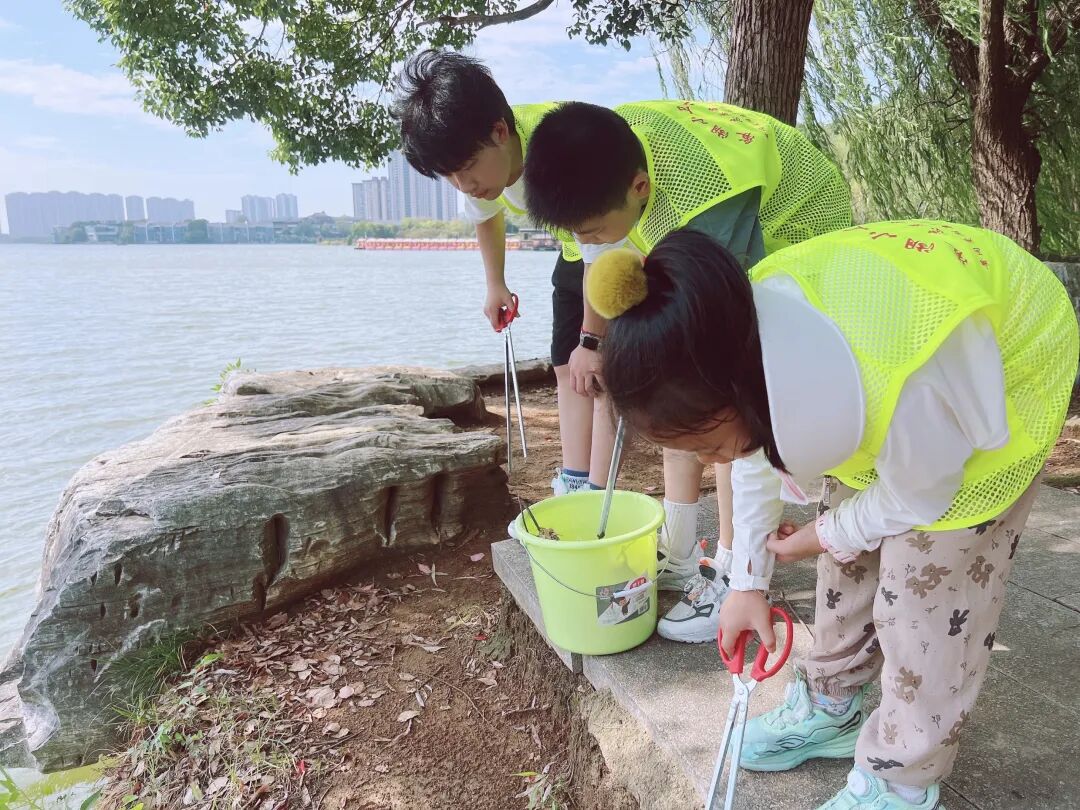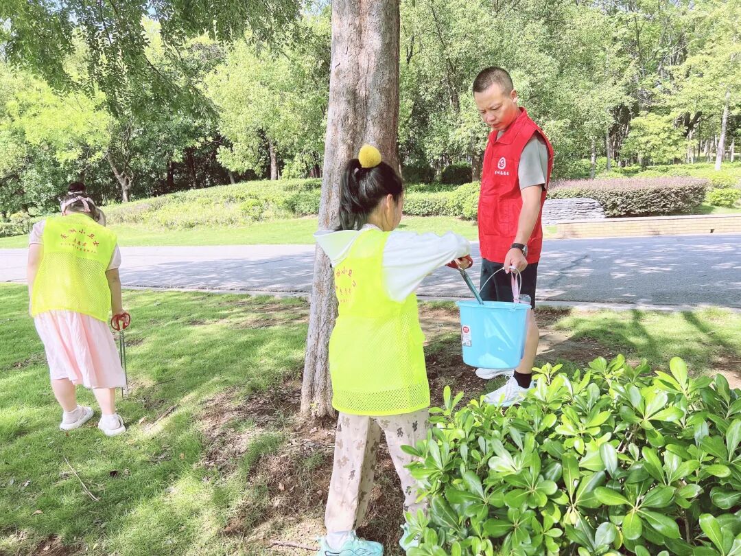在清理过程中,家长们化身“移动课堂”:资深志愿者吕文彬一边示范正确使用垃圾夹,一边给孩子讲解塑料降解需要470年的科学知识;志愿者周静则带着女儿鲍冉希用手机APP识别遗爱湖的植物种类,将垃圾清理与自然教育巧妙结合。“这种‘做中学’的方式,比课本更能让孩子理解环保的紧迫性。” 志愿者倪海松举着装满烟头的便携桶感慨道。