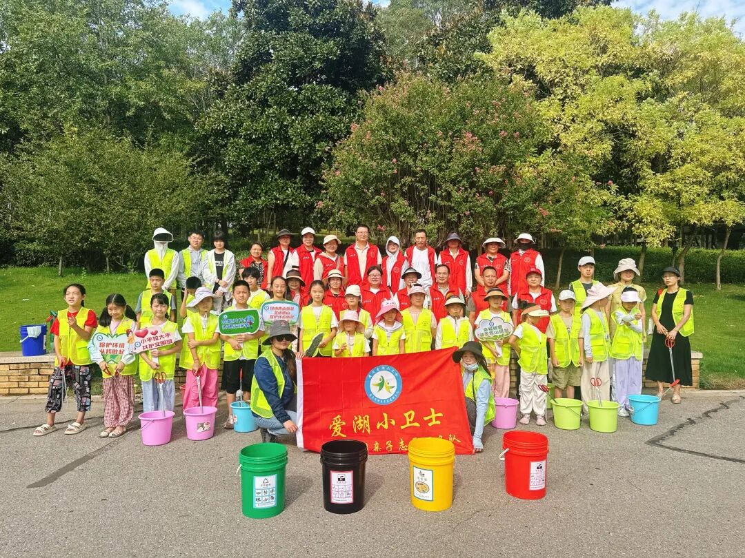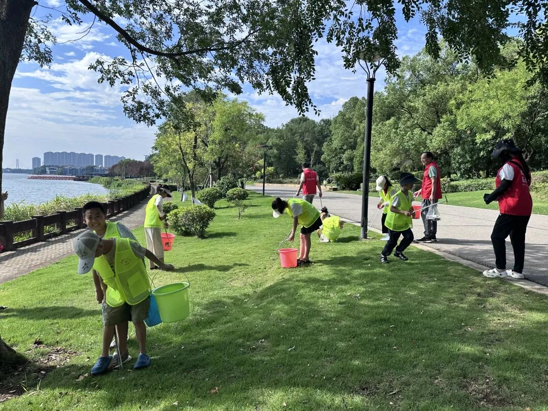 8月23日上午,黄州遗爱湖公园迎来一群特殊的“爱湖小卫士”——由家长与儿童组成的60名爱湖亲子志愿者,身着红马甲与荧光绿马甲,开启了一场从“垃圾清零”到“文明续航”的环保实践活动。