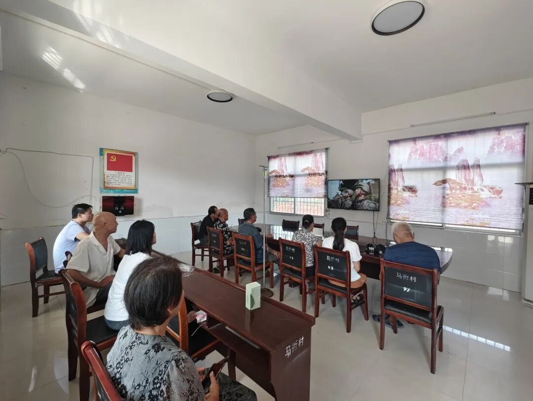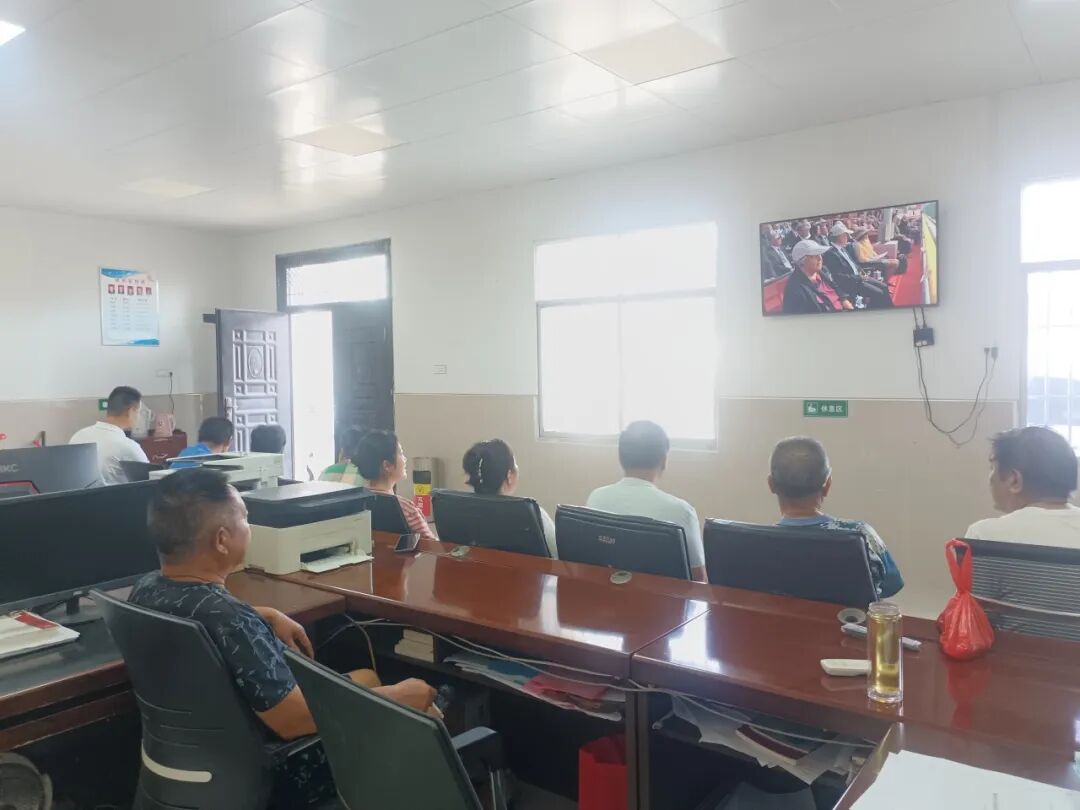 与此同时,堵城镇辖区内14个行政村的村委会会议室同样座无虚席,党员群众满怀期待,共同等待这一历史性时刻的到来。观看过程中,会议室内多次自发响起热烈的掌声,这掌声承载着全体党员干部对祖国强国强军伟大成就的由衷自豪与崇高敬意。