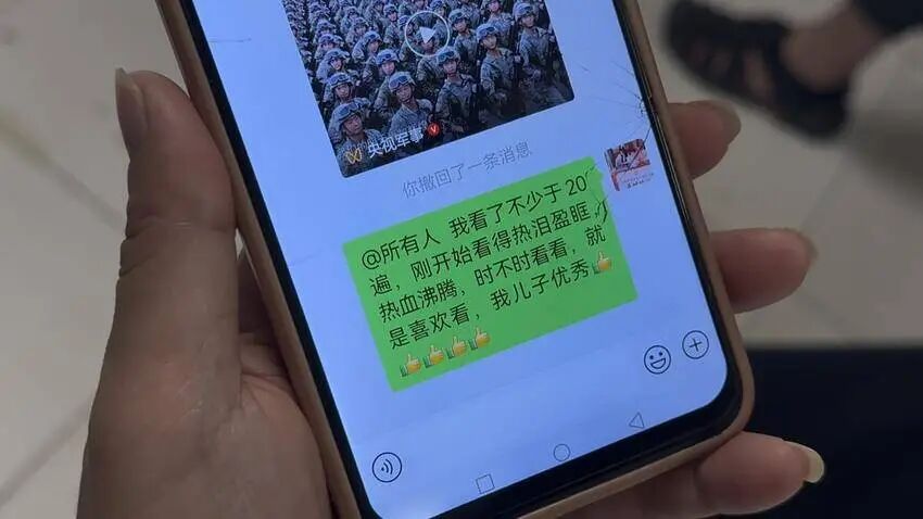 阅兵前几天,家族群里突然弹出一条视频,这条视频正是央视国防军事频道拍摄的阅兵宣传MV《胜利荣光》,而发送者正是许久未主动联系的何佳桓。