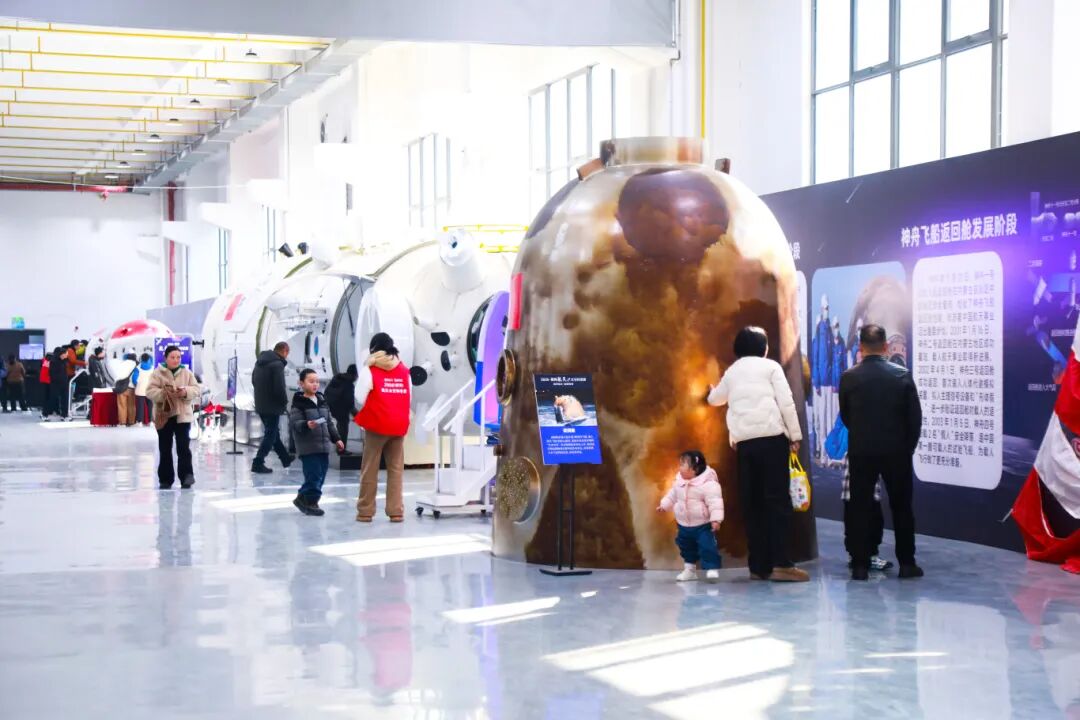展览现场,随处可见家长带着孩子、老师领着学生的身影。孩子们踮着脚尖观察展品,小手轻轻触摸模型,时不时向讲解员抛出五花八门的问题,在好奇与探索中开启航天启蒙之旅。