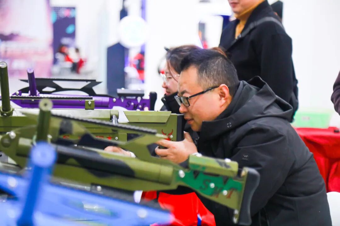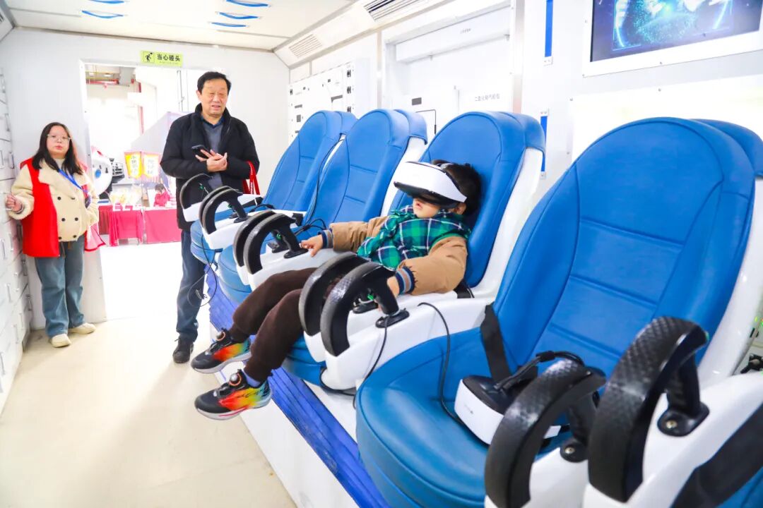 “浩瀚星河——航天的无限可能”展区是孩子们的欢乐天地,也是航天爱好者的圆梦之地。“嫦娥奔月”“火星探秘”“国之荣耀”“未来之翼”四大主题板块,将探月工程、行星探测、应用卫星等航天成果生动呈现,让遥远的宇宙变得触手可及。VR/AR体验区里,孩子们头戴设备,时而伸手“触摸”星辰,时而俯身“探索”火星,欢笑声此起彼伏;模拟射击区前,参观者们凝神瞄准、扣动扳机,在趣味互动中感受国防科技的魅力。一位小朋友在家长的陪同下体验完VR登月后,兴奋地挥舞着小手:“我好像真的踩到月球了,脚下软软的,太神奇了!”