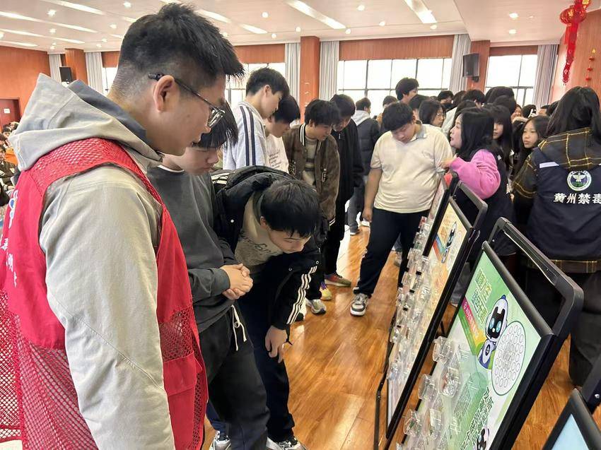 活动现场,工作人员采用“宣讲解读+实物展示+互动问答”的多元形式,让禁毒知识入脑入心。赤壁派出所民警郑执立足专业视角,结合近期青少年涉毒典型案例,深入浅出地剖析了新型毒品的伪装套路与严重危害,重点揭露了伪装成“奶茶”“邮票”“巧克力”等日常食品、饰品的新型毒品的隐蔽性和迷惑性,详细拆解其识别技巧,打破了学生们对“毒品离自己很远”的认知误区。