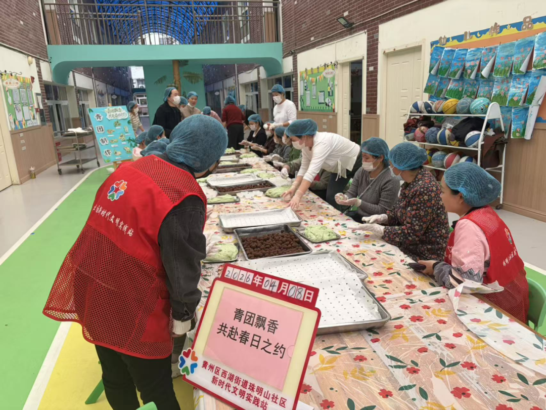 4月8日上午,黄州区西湖街道珠明山社区联合迪司卡瑞幼儿园,开展“青团飘香,共赴春日之约”主题活动。让幼儿感受春日传统美食的魅力,丰富他们的民俗文化认知。