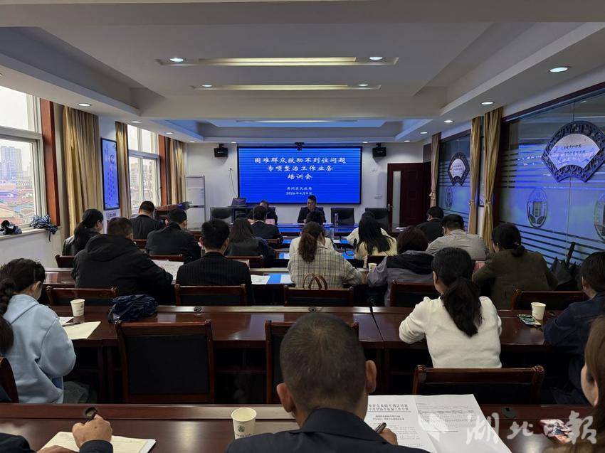 4月9日,黄州区民政局组织召开全区困难群众救助不到位问题专项整治工作业务培训会。区民政局、区残联分管负责同志及相关业务科室负责人,区教育局、区住建局、区应急管理局、区医保局、区人社局、区财政局等相关业务科室经办人员,以及各乡镇(街道)民政、残联业务经办人员参加会议。