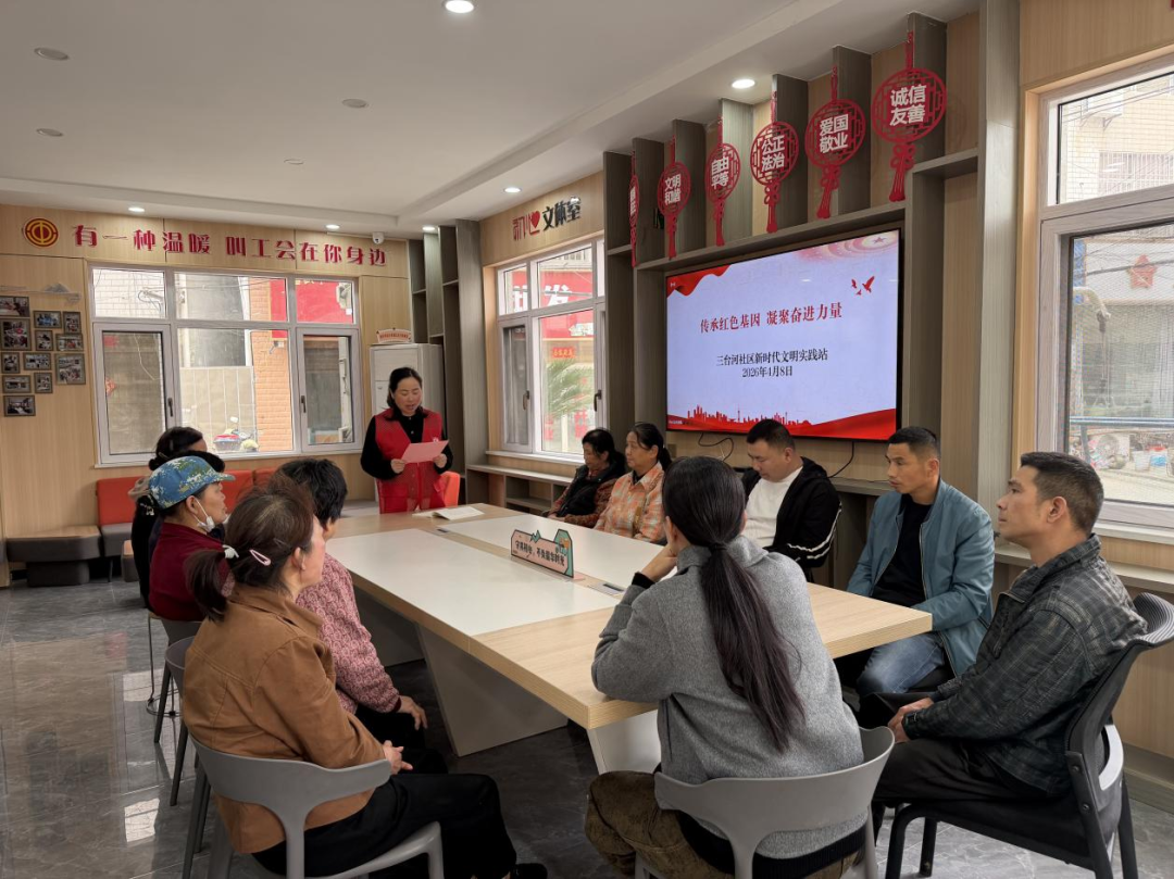 4月8日,黄州区西湖街道三台河社区在红巷驿站开展了一场接地气、有温度的理论宣讲活动,社区党员、居民代表围坐一堂,共学红色精神、共话社区发展。