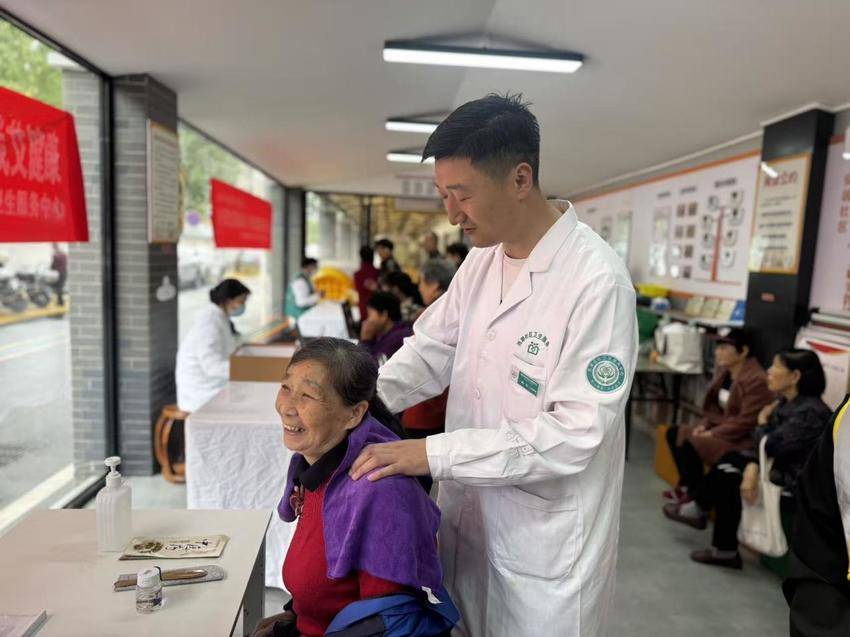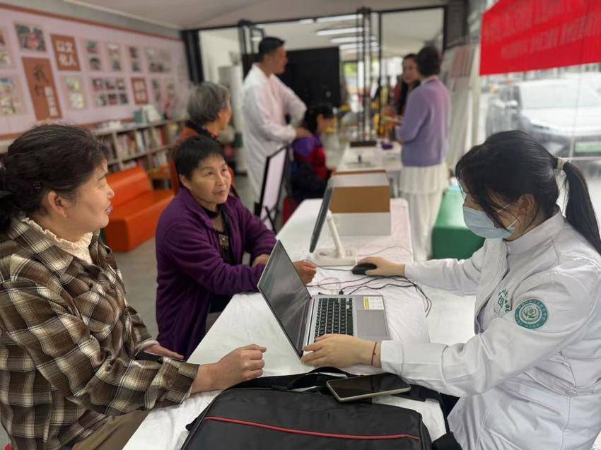 活动现场,爱心义诊区域有序开展多项健康服务。西湖卫生服务中心医护人员通过中医AI智能问诊系统,快速为户外工作者进行体质辨识、健康状况评估,精准给出个性化饮食、作息及运动指导;针对户外工作易患的颈肩腰腿痛、关节劳损等问题,提供专业艾灸锤制作教学,手把手指导大家通过传统中医方式日常理疗;同时安排八段锦现场教学,带领大家在舒缓招式中放松身心,缓解工作带来的肌肉疲劳,现场学习氛围浓厚,参与者纷纷跟着动作认真练习。