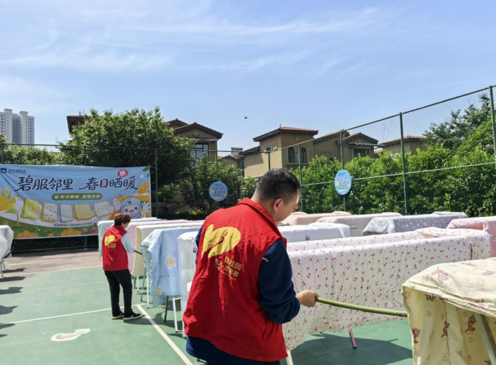 4月26日,晴好天气持续在线,正是除菌除螨、晾晒被褥的最佳时节。为切实解决业主家中被褥久未晾晒、高层晾晒不便、老人晾晒困难等实际生活难题,提升园区居住幸福感与暖心服务体验,黄冈碧桂园党员志愿者服务队主动靠前、贴心发力,在园区集中阳光区域,暖心组织开展免费集中晒被子便民公益服务活动,用看得见、摸得着的暖心行动,守护业主舒心居家生活。