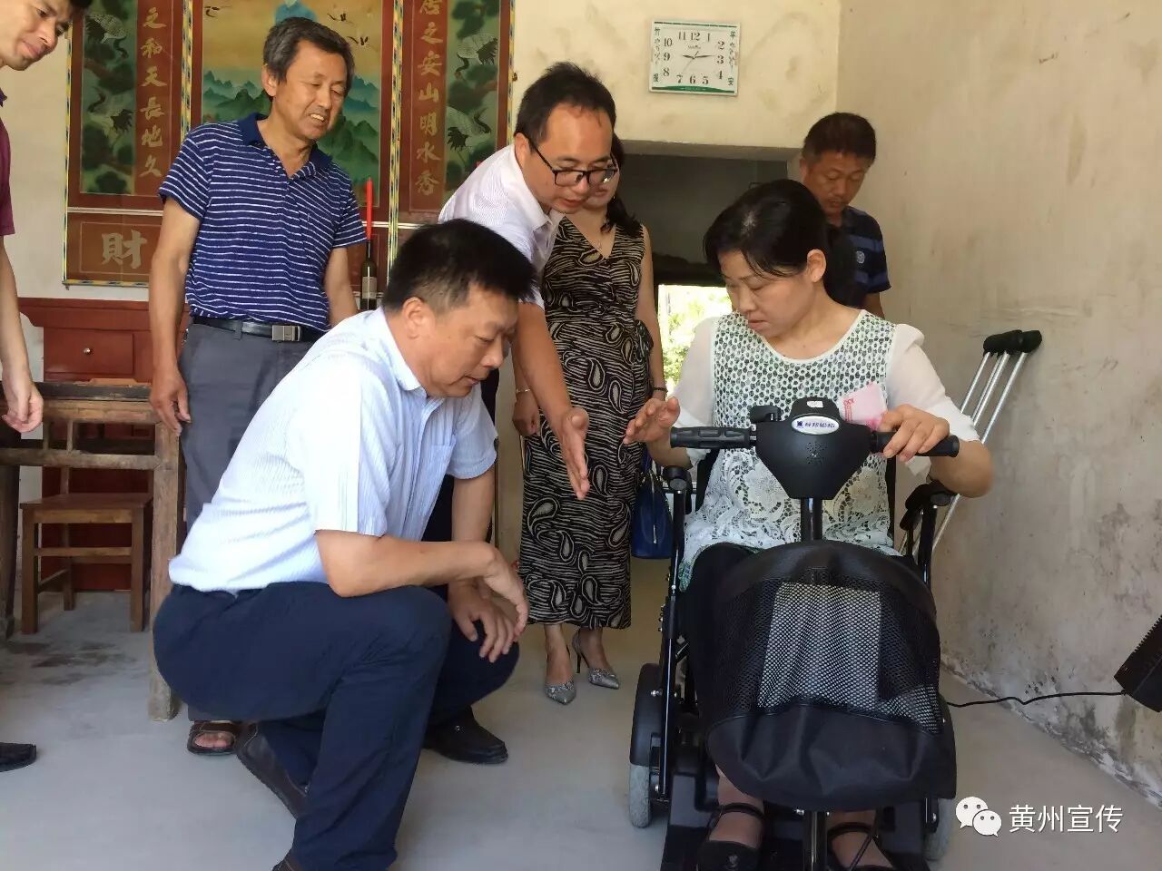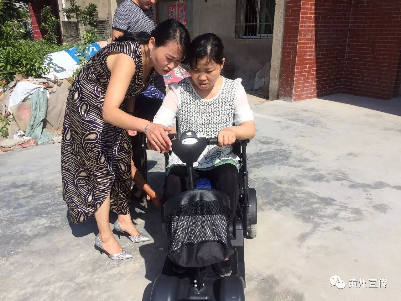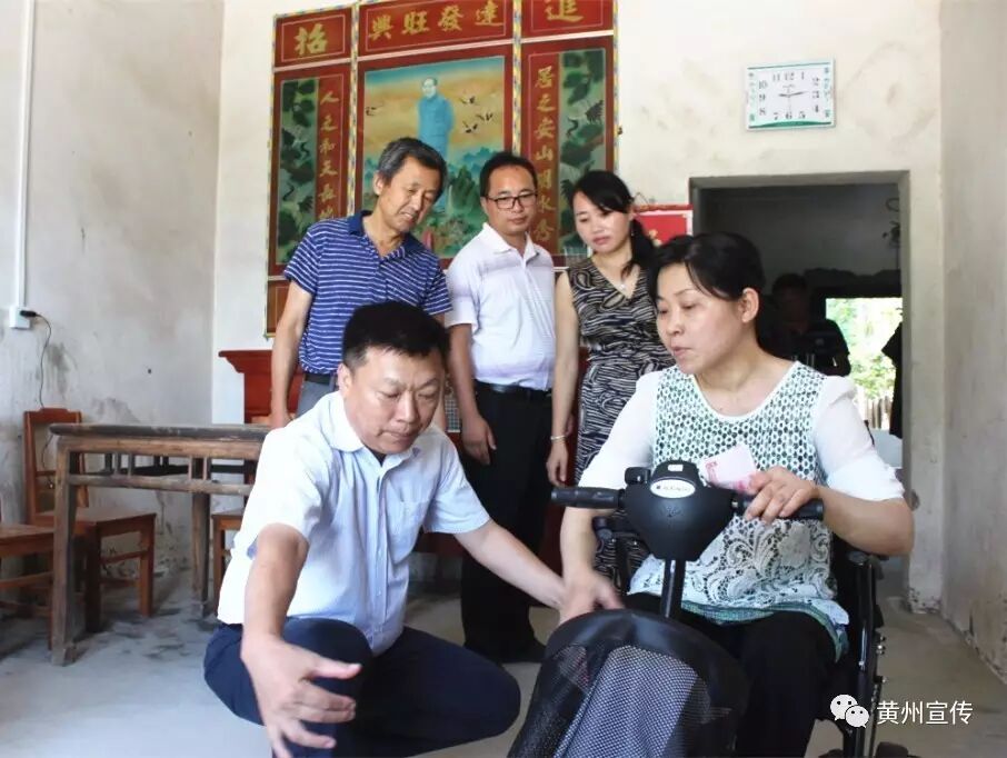 当天,区政府党组成员、办公室主任胡传林、区残联理事长洪进军、区工商联副主席施建涛以及黄州区和源大药房总经理刘利等人到杜细莲家中,为她送去电动轮椅,给她带来生存下去的希望。