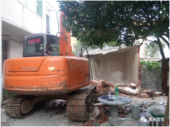 5天时间,拆除院墙3010平方米、花坛6500平方米、棚子1950平方米,封水井46口,移栽果树景观树528株。