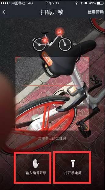 2.用APP扫描车头或者车尾的二维码立即可以解锁。