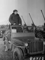△1949年3月,毛泽东检阅我军第一支高炮部队。